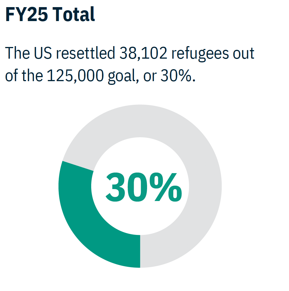 For Fiscal Year 2026 (FY26), President Trump set a refugee admissions goal of 7,500. Through this tracker, we will follow the administration’s admissions data.